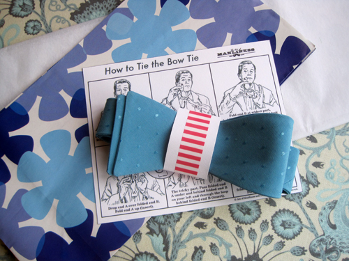 When you have finished making your bow tie head over to Art of Manliness and print out an illustrated copy of “How to Tie a Bow Tie”. Wrap up the printout with your bow tie and give it to someone special! See you soon, I think, with the dress photos (for those of you who didn’t get a sneak peek on Twitter!). The girls had a great time with the photo shoot as usual.