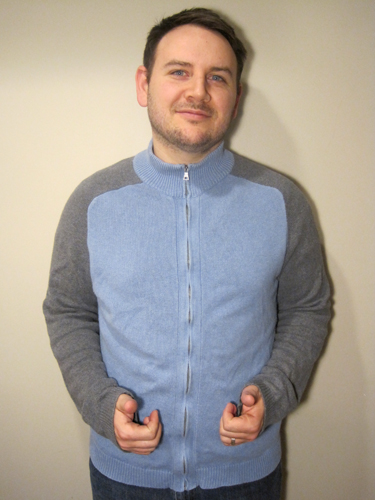 I remembered reading a series by Grosgrain called Embellish Knit Month. This series is amazing and left me wanting to tear apart every sweater in our house and remake it. I did make one for myself, which I should really remember to post. Anyhow, she turns sweaters into cardigans etc. and they looked amazing! I did a quick search and it looks like there are a lot of posts on how to refashion a sweater for women, but I couldn’t find one on making a refashioned sweater into a cardigan for a man. Here you go!
