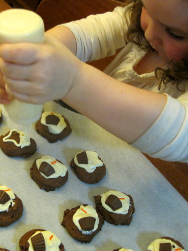 These cookies are really kid friendly. The girls had great fun helping out. My older daughter decorated almost half of them herself!